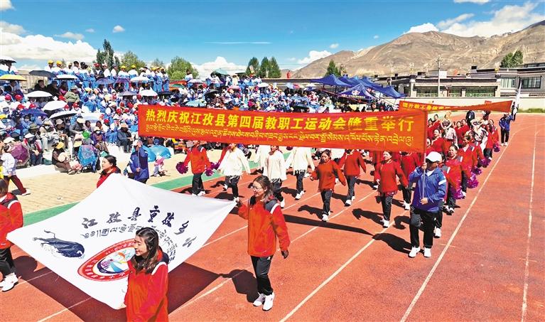 運(yùn)動會開幕式上,各方隊入場場景。記者 扎西頓珠 攝