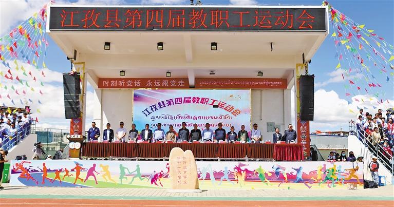 近日,日喀則市江孜縣教育系統(tǒng)舉辦以“奮斗教育路 建功英雄城”為主題的第四屆教職工運(yùn)動會。本屆教職工運(yùn)動會比賽項目眾多,競賽類項目有男女100米跑步賽、男女4×100米接力賽;田賽類項目有男女鉛球、男女跳遠(yuǎn)、男女一分鐘跳繩和女子一分鐘踢毽子比賽;傳統(tǒng)賽類項目有吉韌(藏式克郎球)、藏棋(國王與大臣)、男女拔河比賽、秀茲(藏骰一男一女混合);趣味賽類項目有陸地龍舟(男女混合)、旋風(fēng)跑(男女混合)、隔空取物(男女混合)、“乒”盡全力(男女混合);球賽類項目有男子足球和籃球、女子籃球比賽等項目。