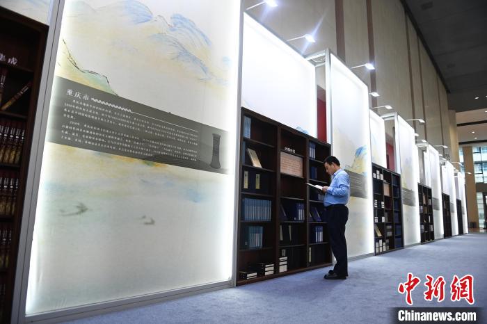 9月12日,長江文明書館在重慶設展陳,圖為展出的古籍。中新網(wǎng)記者 陳超 攝