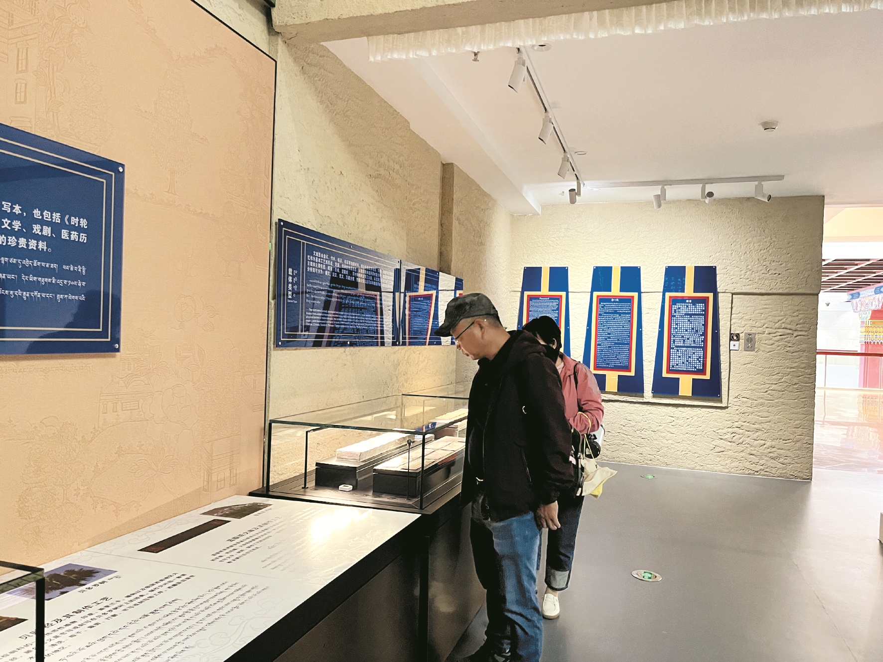 “我們通過該展覽打破觀眾與文獻之間的壁壘,讓更多的觀眾走進博物館,全面了解博物館內的古籍文獻內容。西藏地廣人稀,文物資源非常豐富,希望這個展覽以后能成為西藏博物館古籍文獻的品牌,我們也會常換常新,讓小平臺發(fā)揮大作用?!蔽鞑夭┪镳^副館長巴桑羅布說。