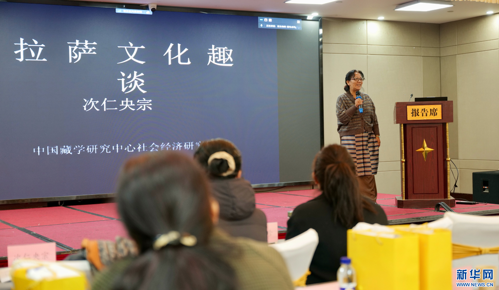 11月13日,中國藏學(xué)研究中心研究員次仁央宗做關(guān)于拉薩文化的演講。新華網(wǎng) 柑丹鴦琦 攝