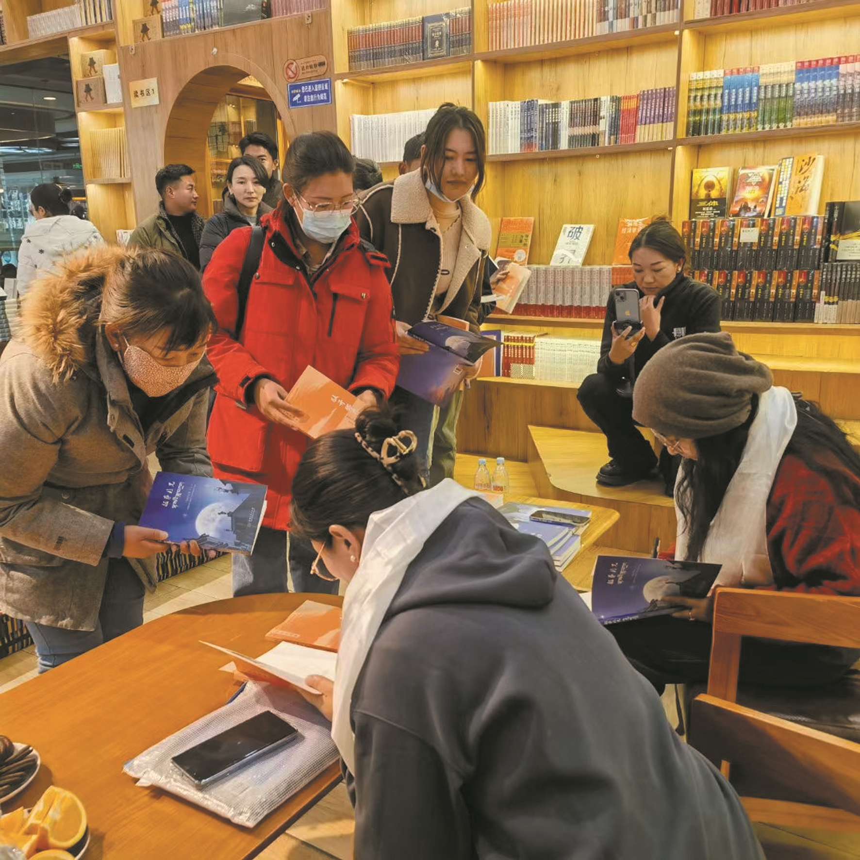圖為在讀書(shū)分享交流會(huì)現(xiàn)場(chǎng),作家納穆卓瑪與達(dá)娃央金在為讀者簽名。 拉薩融媒記者 滿(mǎn)文妍攝