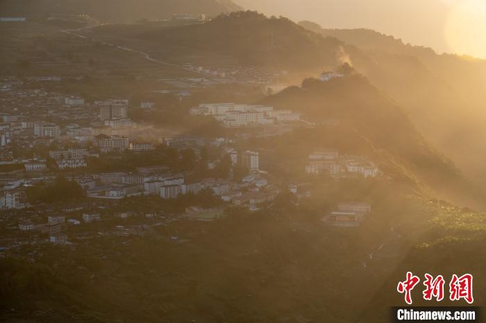 12月21日,日落時(shí)分西藏墨脫縣縣城風(fēng)光?!≈行律缬浾?江飛波 攝