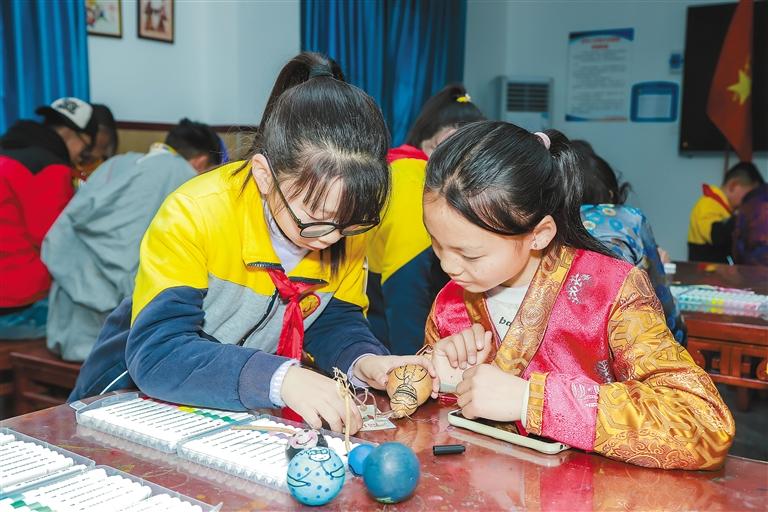 圖為山南黃山兩地學(xué)生在課堂上互動(dòng)協(xié)作,共同完成手工作業(yè)。記者 武沛濤 攝