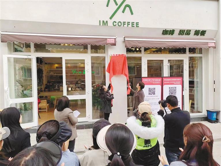 圖為“龍姐”咖啡婦女兒童維權“e”站揭牌現(xiàn)場。記者 盧文靜 攝