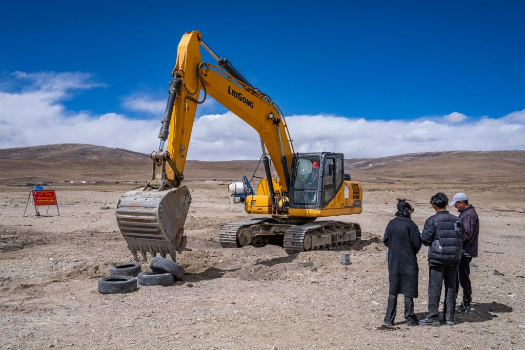 在那曲市聶榮縣尼瑪鄉(xiāng),農(nóng)牧民選手在進行挖掘機操作技能的比賽(5月11日攝)。新華社記者孫非 攝