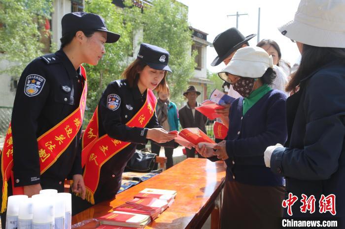 圖為西藏邊檢總站執(zhí)法調(diào)查支隊民警向民眾普及《民法典》知識。徐錫萬 攝