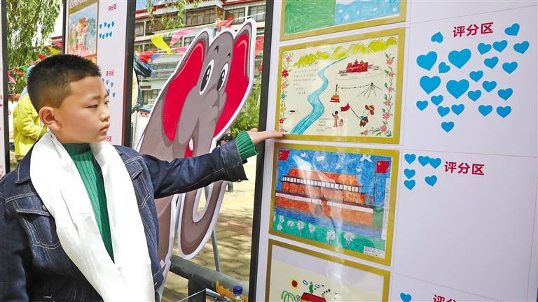 參加活動(dòng)的小朋友在展示自己的作品。記者 格桑倫珠 攝