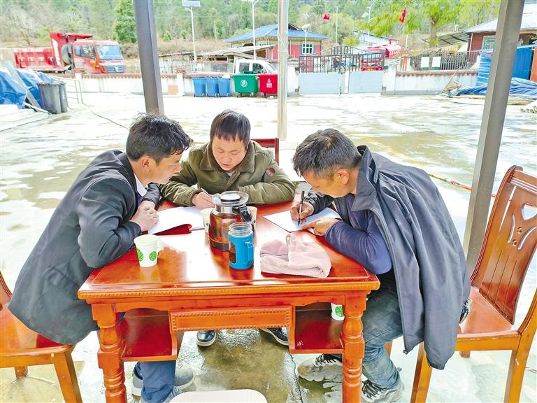 圖為墨脫縣格當(dāng)鄉(xiāng)多龍崗村組織村干部學(xué)習(xí)國(guó)家通用語(yǔ)言文字。 記者 王敏 通訊員 郎玲 攝
