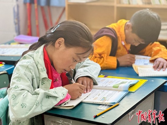 9月12日,四川省甘孜藏族自治州雅江縣呷拉鎮(zhèn)片區(qū)寄宿制學(xué)校,學(xué)生在寫作業(yè)。中青報·中青網(wǎng)記者 焦敏龍 攝