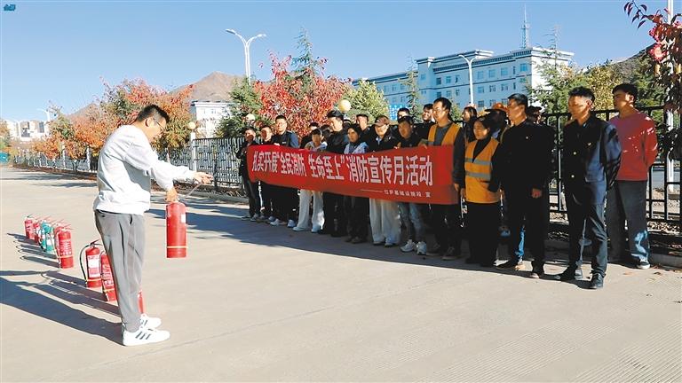 圖為工作人員講解消防器材使用技巧。記者 旦增蘭澤 通訊員 拉巴次仁 攝