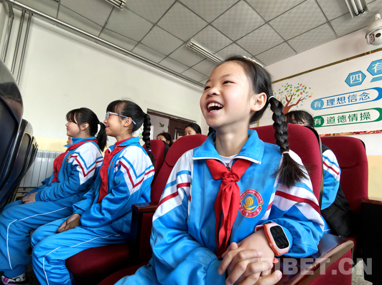 圖為4月23日,西藏自治區(qū)新華書店在拉薩市城關(guān)區(qū)海淀小學開展的“享受閱讀 讓夢飛翔”閱讀校園行活動互動環(huán)節(jié),有趣的互動把小學生給逗樂了 攝影:次旦拉姆