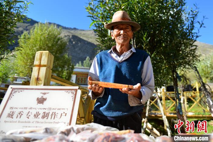 圖為西藏尼木縣吞巴景區(qū)內,一位農牧民銷售自家制作的藏香。(資料圖) 江飛波 攝