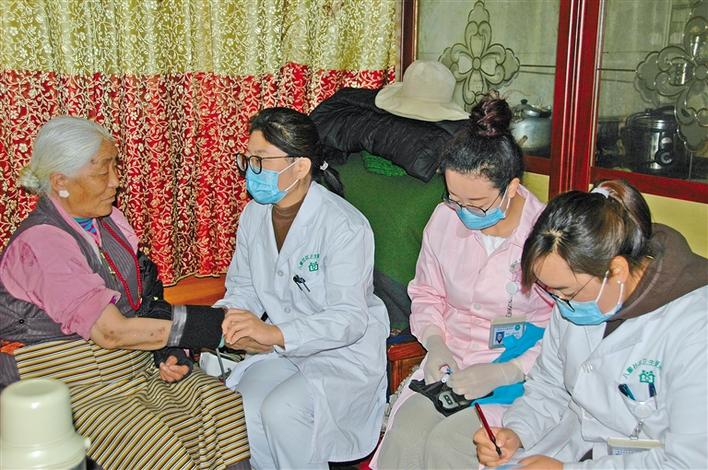 圖為家庭簽約醫(yī)生到拉薩繞賽居委會五保戶益西曲珍家中上門服務(wù)。記者 曉勇 攝