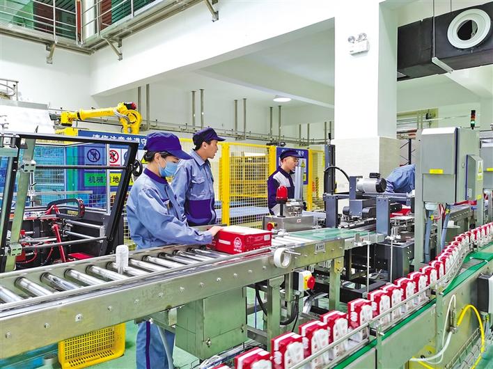 圖為西藏凈土乳業(yè)有限公司牛奶生產(chǎn)線上,工人們正對(duì)產(chǎn)品進(jìn)行質(zhì)檢。記者 孫文娟 張尚華 攝
