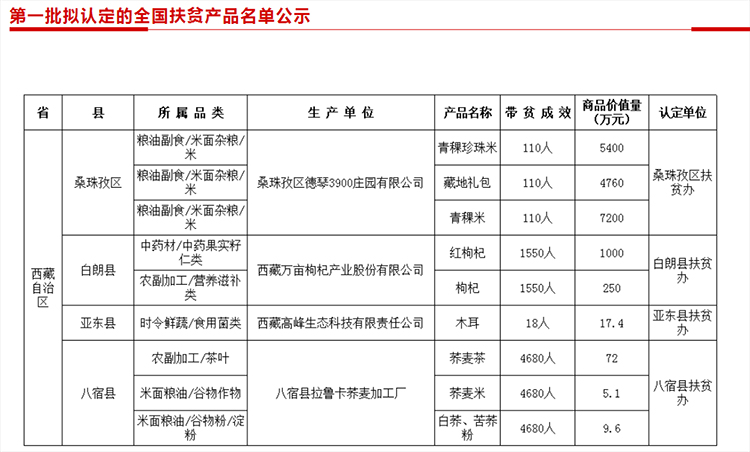 圖為第一批《全國(guó)扶貧產(chǎn)品名單》中的西藏自治區(qū)部分來(lái)源:中國(guó)社會(huì)扶貧網(wǎng)