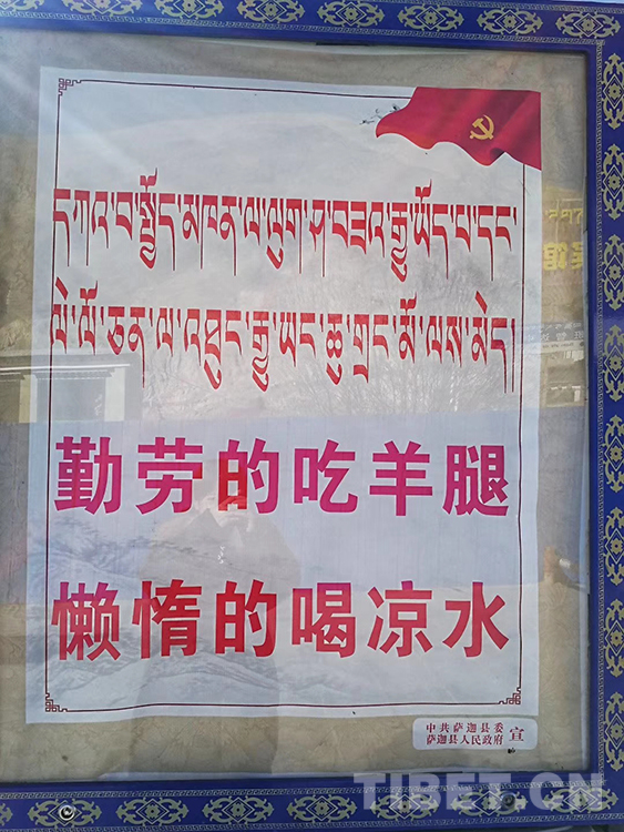 圖為西藏自治區(qū)薩迦縣的一幅海報(bào) 攝影:江寧?kù)o