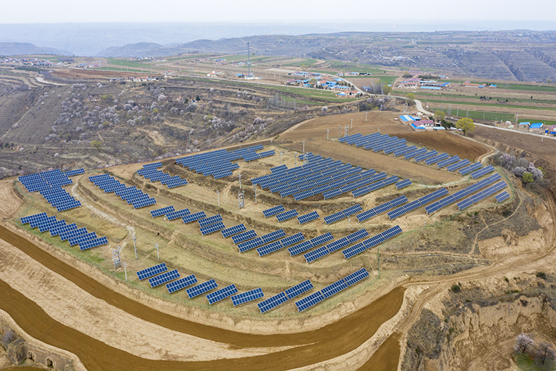紅河鎮(zhèn)夏塬村旱塬梯田上的光伏電站