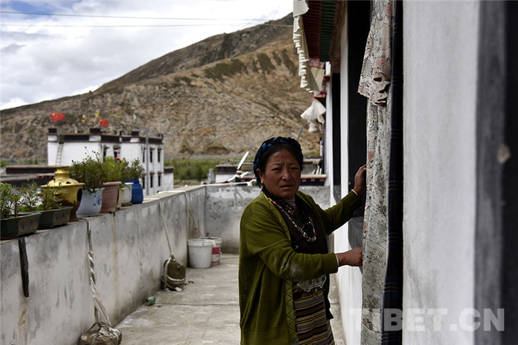圖為達那答鄉(xiāng)政府新區(qū)易地扶貧搬遷點居民尼瑪普赤在自家門前 攝影:王媛媛