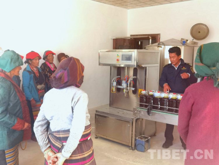 中國西藏網訊 利用剛學會的技術,西藏自治區(qū)日喀則市謝通門縣卡嘎鎮(zhèn)的農牧民群眾喜笑顏開地提走了機械化生榨菜籽油。