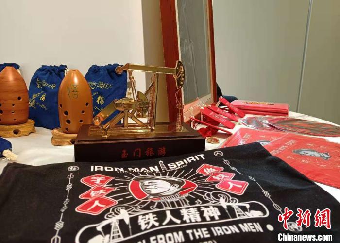 圖為“鐵人”王進(jìn)喜故里甘肅玉門(mén)以“鐵人精神”制作的文創(chuàng)產(chǎn)品展示?!堟?攝
