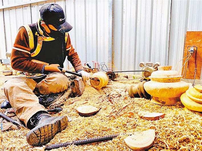 圖為合作社成員在加工木碗。通訊員 張淑萍 攝