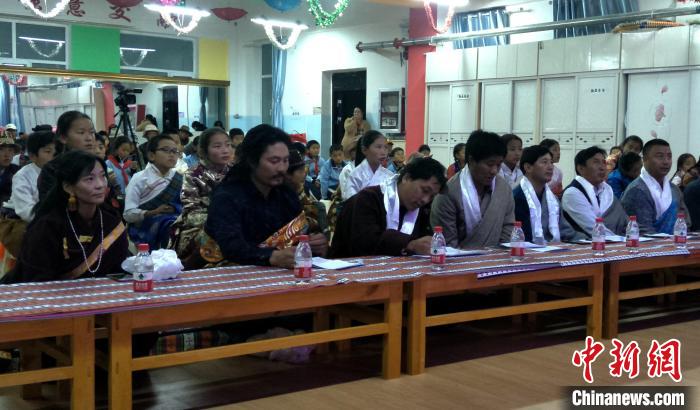 圖為格熱(前排左二)在逗曲比賽中當(dāng)評委。(資料圖) 受訪者供圖