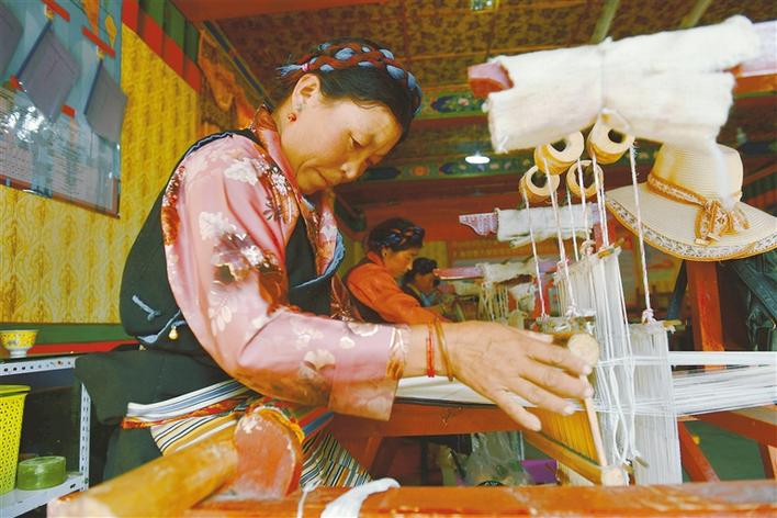 西藏日喀則仁布縣德吉林鎮(zhèn)強(qiáng)欽村德旦康薩農(nóng)牧民合作社是一家從事民族手工編織的專業(yè)合作社,主要生產(chǎn)卡墊、毛毯、藏裝等產(chǎn)品,現(xiàn)有員工150余名。近年來(lái),在當(dāng)?shù)卣膸椭龀窒?,合作社先后組織農(nóng)牧民進(jìn)行技能培訓(xùn)10次,培訓(xùn)人數(shù)超過(guò)210人,通過(guò)培訓(xùn)提升了合作社員工的技術(shù)能力,幫助當(dāng)?shù)剞r(nóng)牧民群眾實(shí)現(xiàn)了就近就便就業(yè)的愿望。