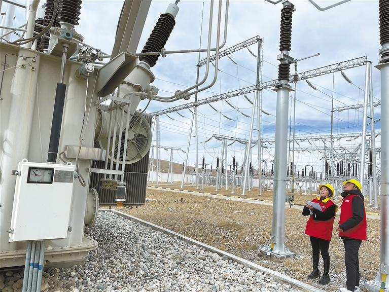 圖為國網(wǎng)那曲供電公司變電運檢中心員工在對110千伏那曲變電站設備進行檢查。記者 萬靖 攝