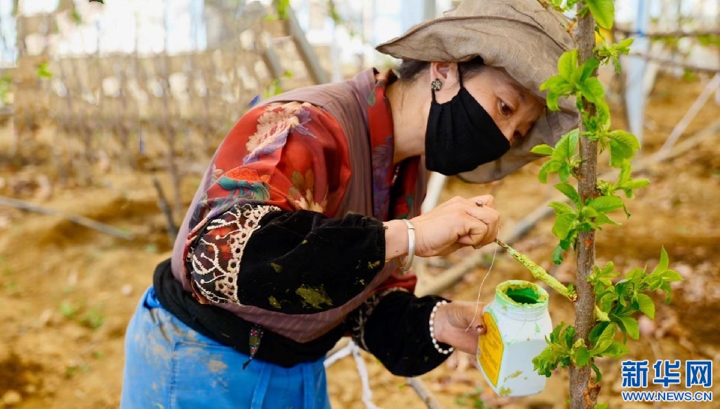 一棟溫暖的溫室大棚內(nèi),工人們正跟著自己的師傅德吉學(xué)習(xí)如何給車?yán)遄訕渌赏潦┓?、新梢摘心、控溫澆水、人工授粉,以確保今年順利掛果。近日,位于西藏拉薩市尼木縣吞彌現(xiàn)代農(nóng)業(yè)產(chǎn)業(yè)園區(qū)的車?yán)遄哟笈锢锍尸F(xiàn)出一片繁忙景象。