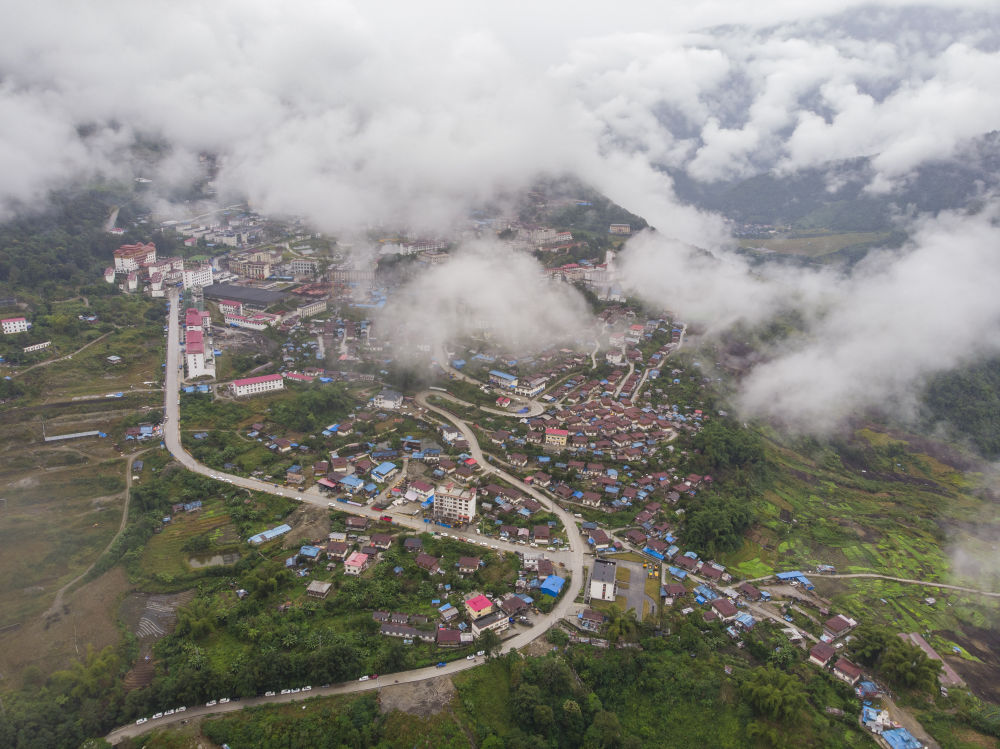 俯瞰墨脫縣城(2019年10月26日無人機(jī)拍攝)。新華社記者 孫非 攝