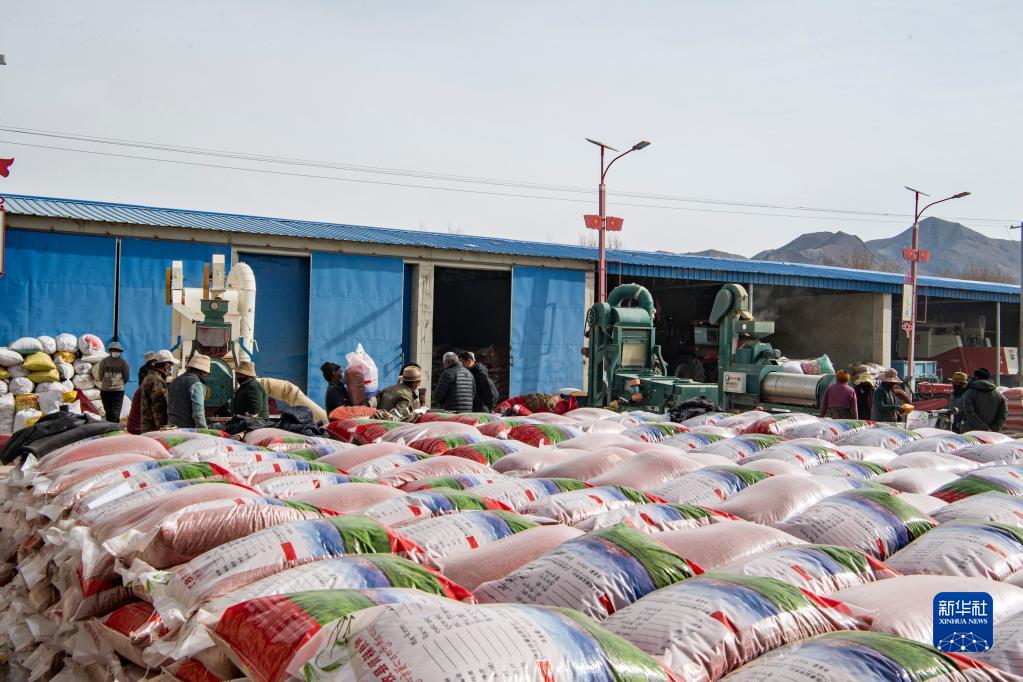 在西藏日喀則市江孜縣紫金鄉(xiāng)努堆村的農(nóng)機(jī)農(nóng)民專業(yè)合作社內(nèi),兩臺(tái)青稞種谷物精選機(jī)正開足馬力,給新收獲的青稞良種過篩、除雜、包衣、裝袋,50公斤一袋的青稞良種已碼滿大半個(gè)院子。