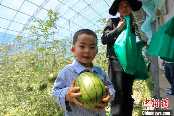 采摘節(jié)上,孩子們進入高原大棚采摘西瓜。 主辦方供圖