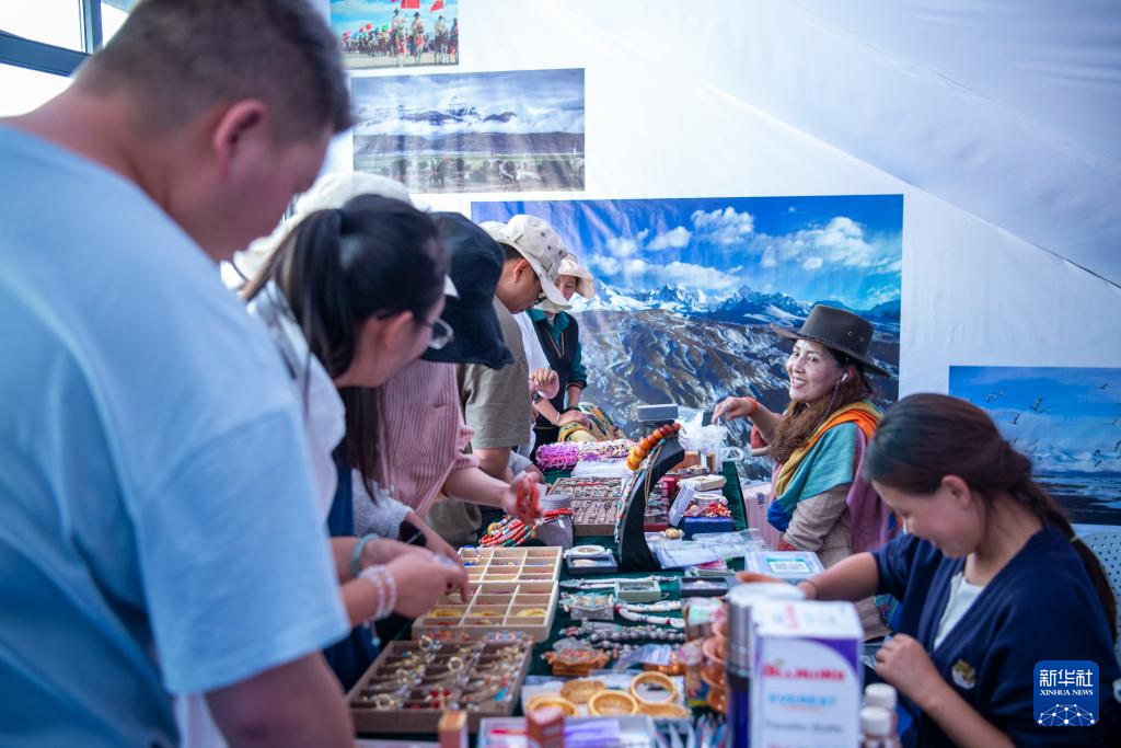 近日,西藏阿里地區(qū)舉辦物資交流會暨旅游紀念品展銷會,吸引游客參觀購買。特色產(chǎn)品展銷會帶動阿里旅游經(jīng)濟發(fā)展,助力農(nóng)牧民增收致富。