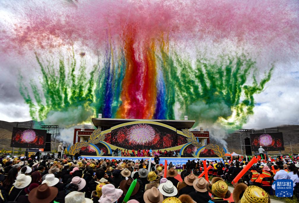 當(dāng)日,2023年西藏山南中國農(nóng)民豐收節(jié)暨隆子縣玉珞文化旅游節(jié)開幕式在隆子縣舉行。當(dāng)?shù)匚乃嚬ぷ髡邽楝F(xiàn)場數(shù)千名農(nóng)牧民觀眾獻上精彩演出,共慶豐收,歌頌家鄉(xiāng)。