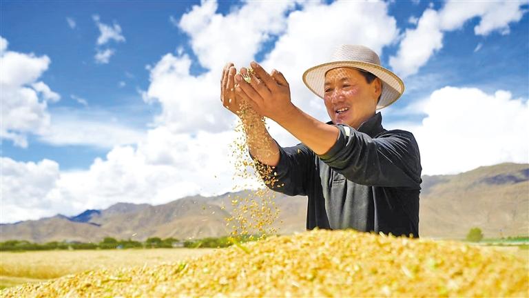 日喀則市白朗縣嘎東鎮(zhèn)馬義村村委會副主任普瓊手捧豐收的麥粒,高興地說:“高標準農(nóng)田建設為我們節(jié)省了大量的人力,實現(xiàn)了農(nóng)業(yè)機械化,讓未來的生活充滿了希望?!?/p>