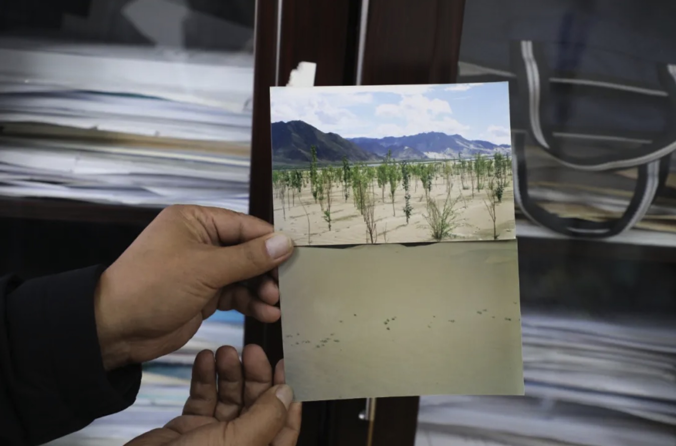 “過去,扎囊縣扎其鄉(xiāng)德吉新村一帶公路兩旁全是沙丘,風(fēng)一吹,路過的車輛經(jīng)常陷進(jìn)沙里無(wú)法行駛?!?/p>