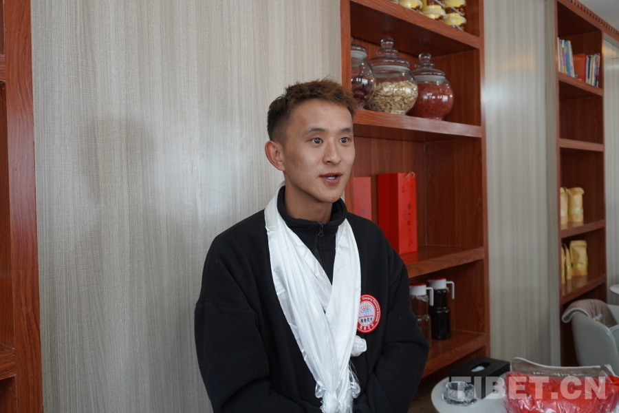圖為正在接受采訪的格?;ㄩ_體驗館運營負責(zé)人丹增洛色 攝影:張曉琪