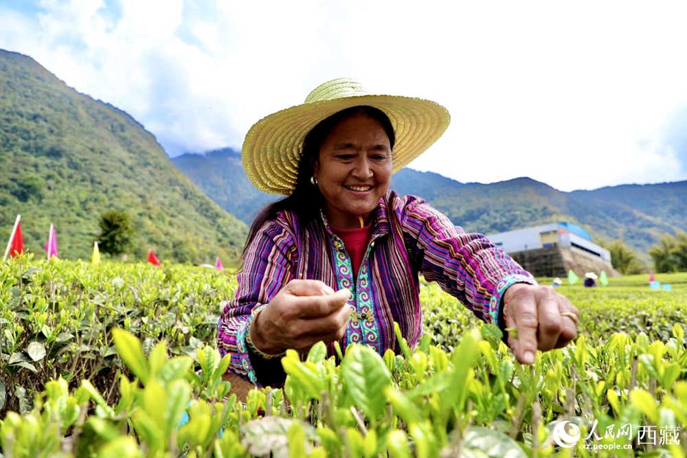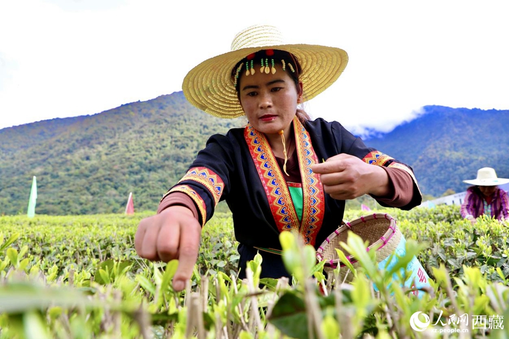 墨脫縣門巴族茶農采摘茶葉。人民網記者 次仁羅布攝