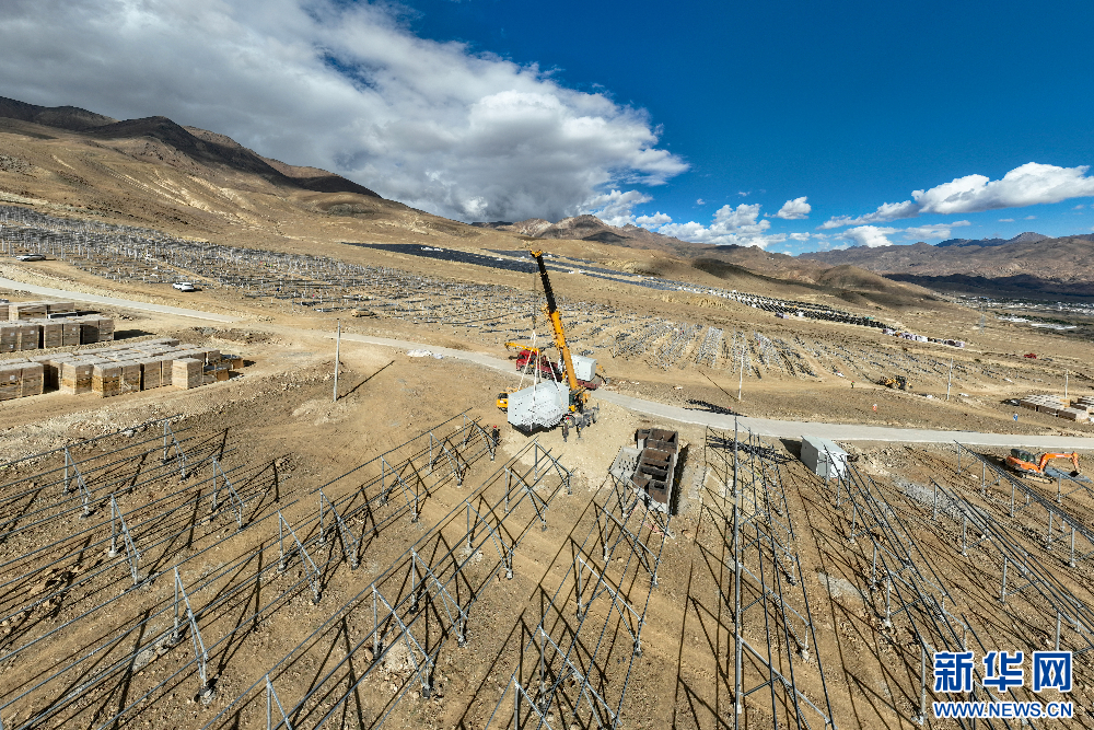 在建設(shè)中的110千伏協(xié)合措美縣20(MW)并網(wǎng)光伏電站項目(無人機照片)。新華網(wǎng) 旦增努布 攝