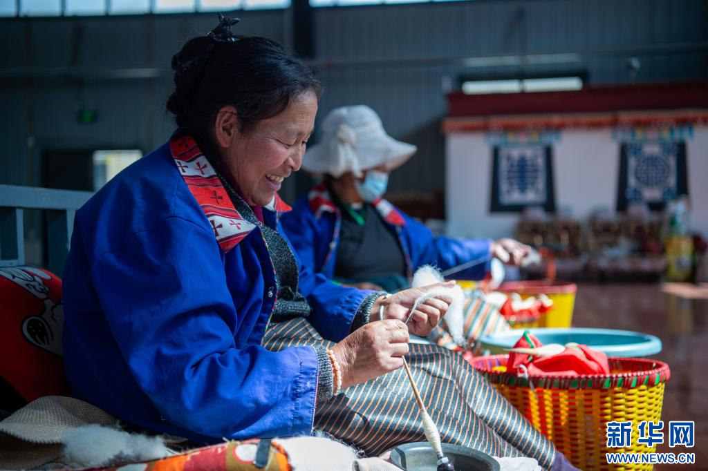 6月24日,合作社員工在捻線。新華網(wǎng) 旦增努布 攝