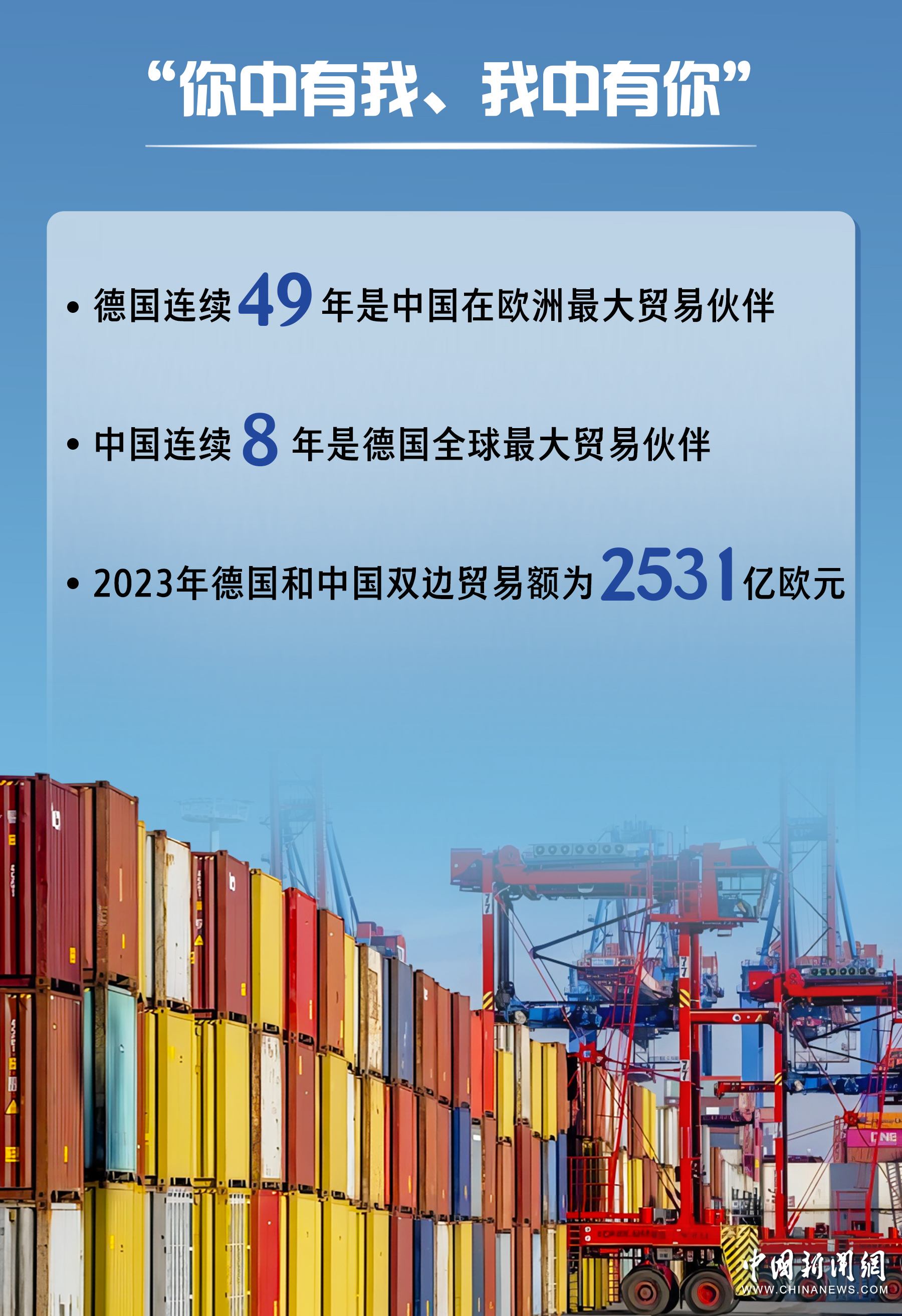 根據德國聯邦統(tǒng)計局數據,2023年德國和中國雙邊貿易額為2531億歐元,中國已連續(xù)8年成為德國全球最大貿易伙伴。德國連續(xù)49年是中國在歐洲最大貿易伙伴。