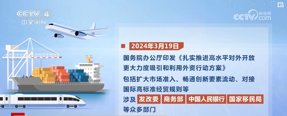 2024年3月19日,國(guó)務(wù)院辦公廳印發(fā)《扎實(shí)推進(jìn)高水平對(duì)外開(kāi)放 更大力度吸引和利用外資行動(dòng)方案》,包括擴(kuò)大市場(chǎng)準(zhǔn)入、暢通創(chuàng)新要素流動(dòng)、對(duì)接國(guó)際高標(biāo)準(zhǔn)經(jīng)貿(mào)規(guī)則等,涉及國(guó)家發(fā)展改革委、商務(wù)部、中國(guó)人民銀行、國(guó)家移民局等眾多部門(mén)。