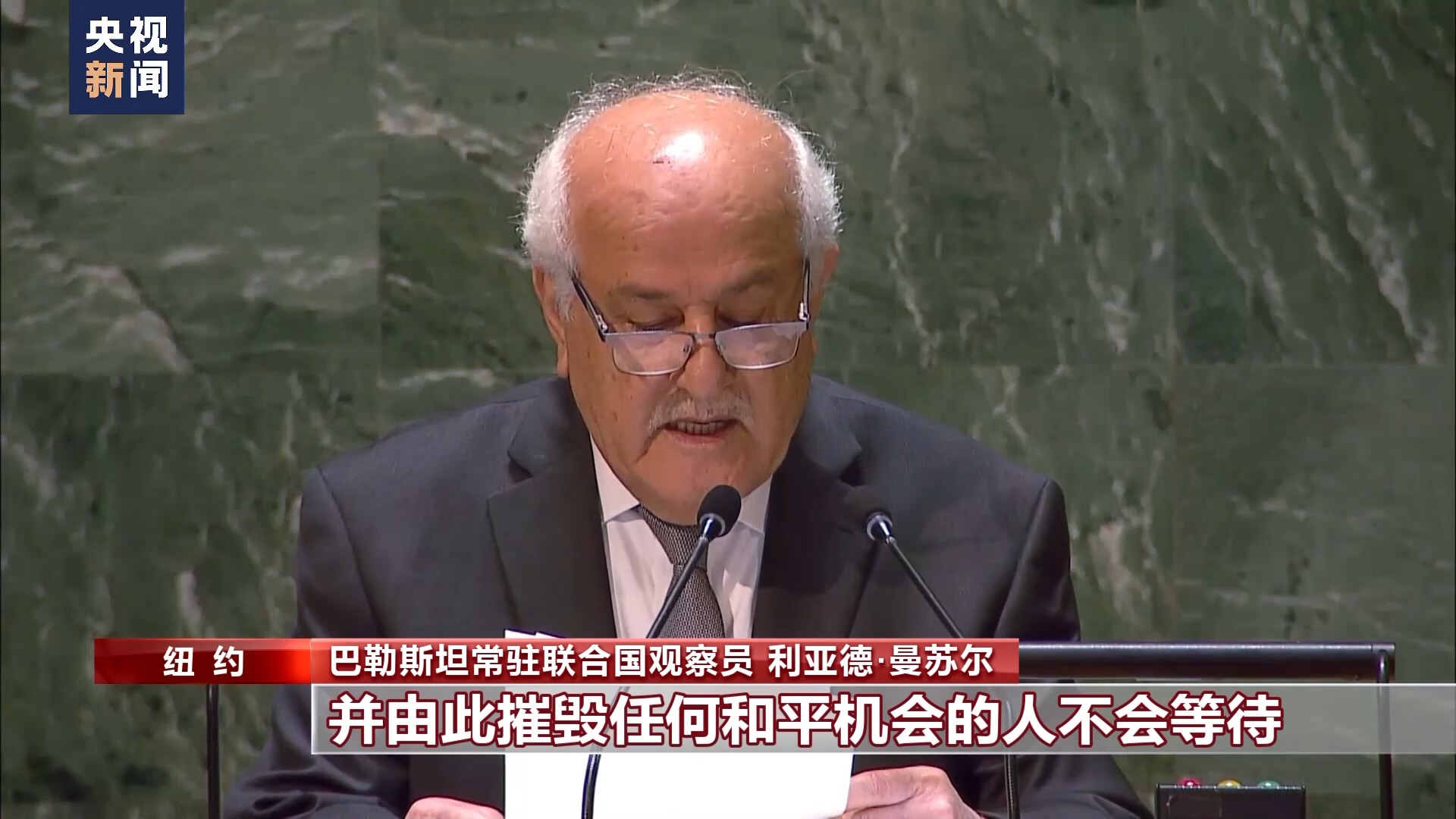 巴勒斯坦常駐聯(lián)合國觀察員 利亞德·曼蘇爾:那些想要摧毀巴勒斯坦國,并由此摧毀任何和平機會的人不會等待。