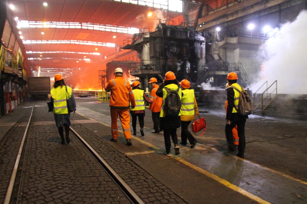 2018年12月4日,在塞爾維亞斯梅戴雷沃,河鋼塞爾維亞有限公司中方管理人員在鋼鐵廠內(nèi)查看。新華社發(fā)(河鋼塞爾維亞有限公司供圖)