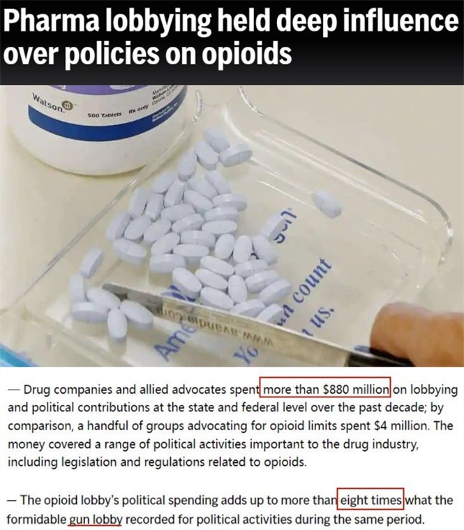 據(jù)美媒披露,為了阻止藥劑師更謹(jǐn)慎地開具處方、推動(dòng)藥房快速售藥,阿片類藥物制造商和經(jīng)銷商在近十年內(nèi)共花費(fèi)了8.8億美元用于“打通關(guān)系”,比美國(guó)槍支游說(shuō)集團(tuán)花的錢還要高8倍。