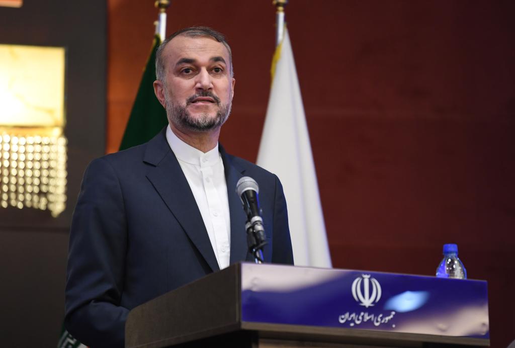5月12日,在伊朗德黑蘭,阿卜杜拉希揚(yáng)在第三屆伊朗-阿拉伯對(duì)話會(huì)上發(fā)表講話。新華社記者沙達(dá)提攝