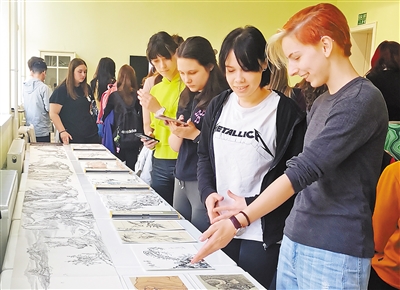 在諾維薩德大學(xué)孔子學(xué)院,學(xué)員正在欣賞中國(guó)傳統(tǒng)繪畫(huà)作品。諾維薩德大學(xué)孔子學(xué)院供圖