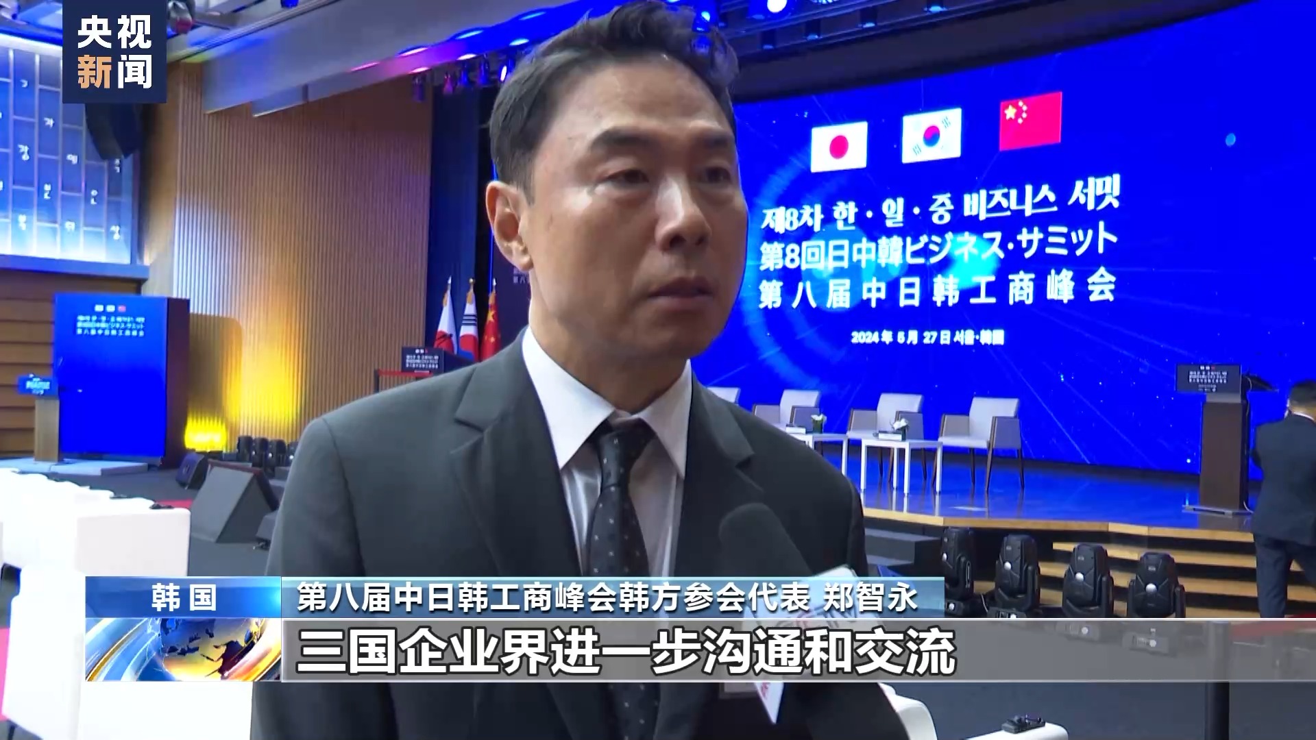 第八屆中日韓工商峰會韓方參會代表 鄭智永:通過中日韓工商峰會,三國企業(yè)界進(jìn)一步溝通和交流,期待中日韓三國經(jīng)濟(jì)可以持續(xù)發(fā)展,也期待中日韓三國加深友好關(guān)系。
