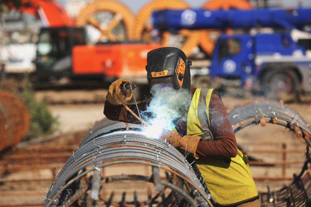 3月2日,一名中方員工在伊拉克巴格達尼蘇爾立體交通樞紐項目現(xiàn)場施工作業(yè)。新華社發(fā)(哈利勒·達伍德攝)